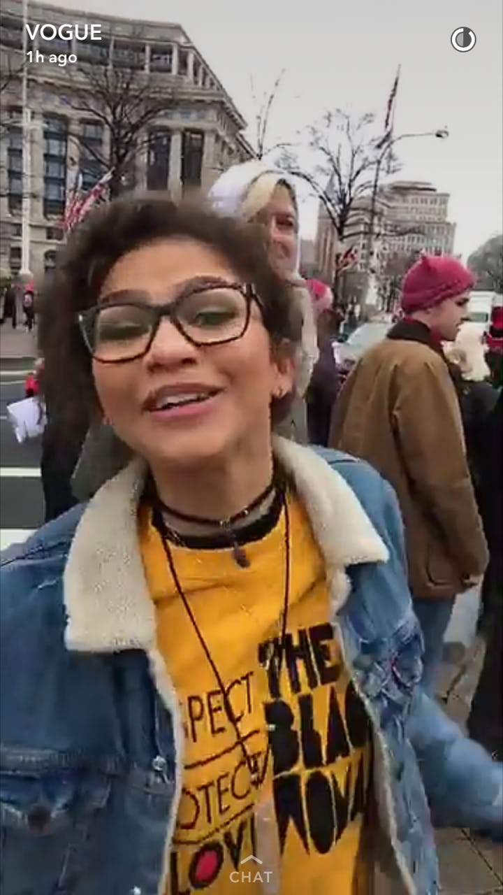 Zendaya’s shirt reads “respect, protect, love the black woman.” Hell. Yes.