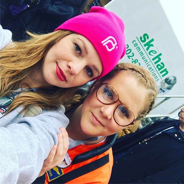 #Science? If you look closely you can see that Schumer is wearing feminist buttons.