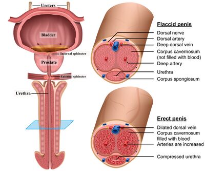 - Corpora cavernosa (2): Fill with blood to create an erection